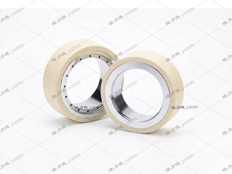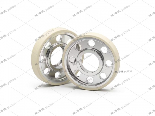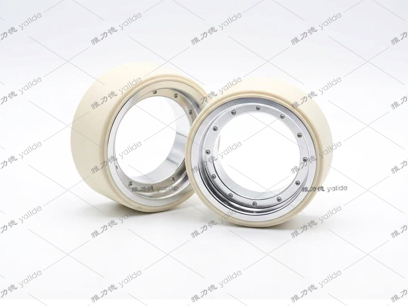 95A±2 高硬度 NDI 轮面,具备超强抗压变形能力,高载荷工况下稳定不形变,搭配 AL6061-T6 高强度轮毂,实现超长使用寿命,耐老化、抗磨损,大幅降低设备维护成本。